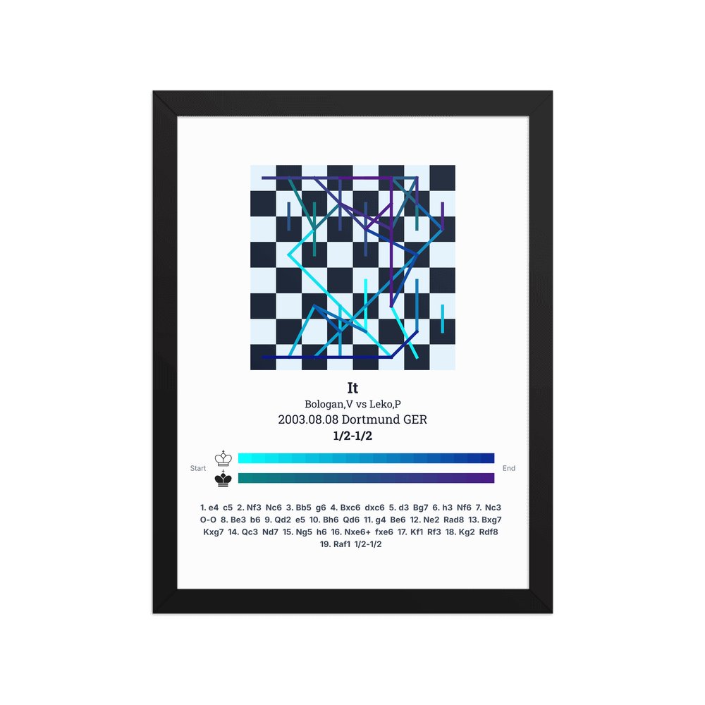 Museum-quality poster on thick, durable matte paper. A sharp, clean look for any chess visualisation.