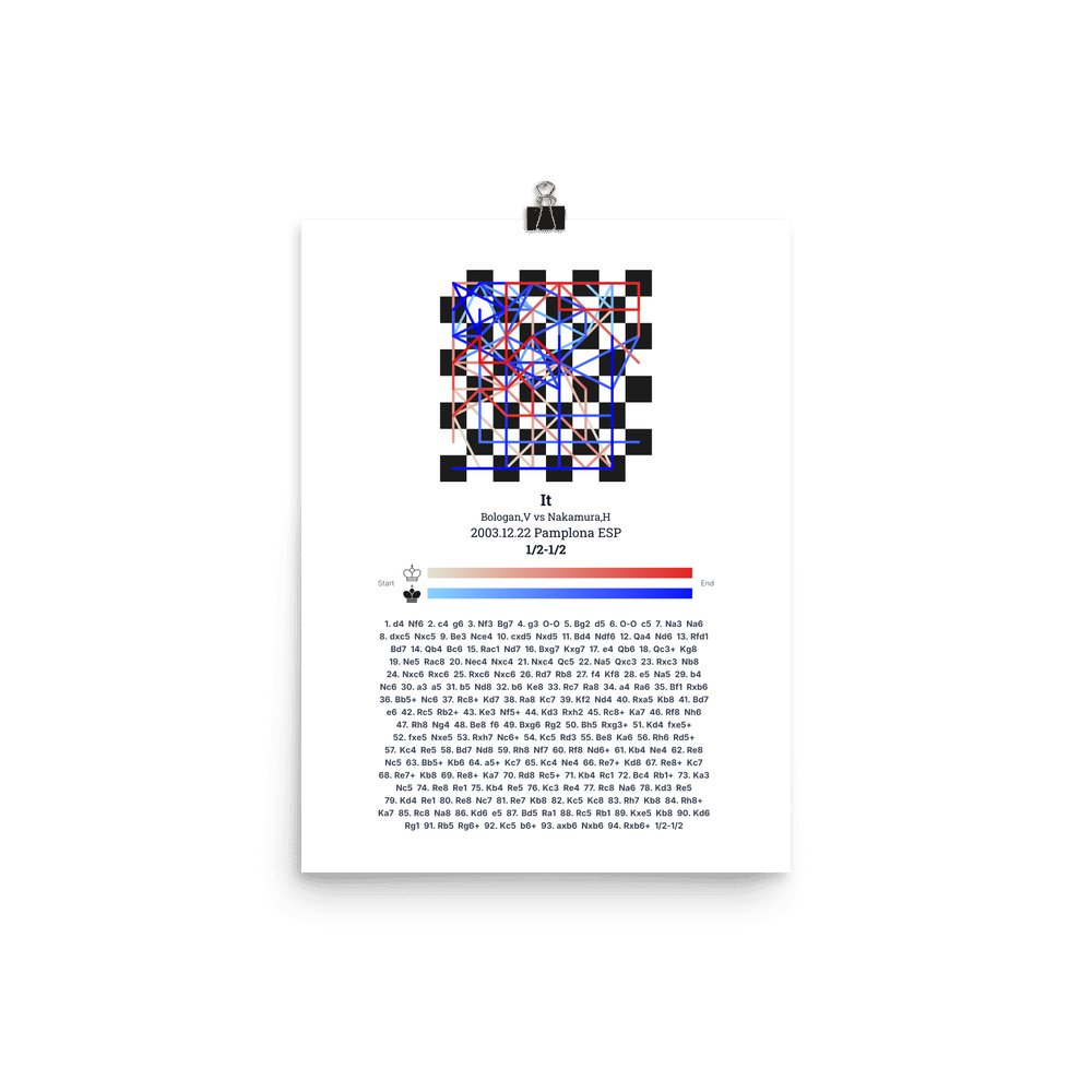 Museum-quality poster on thick, durable matte paper. A sharp, clean look for any chess visualisation.