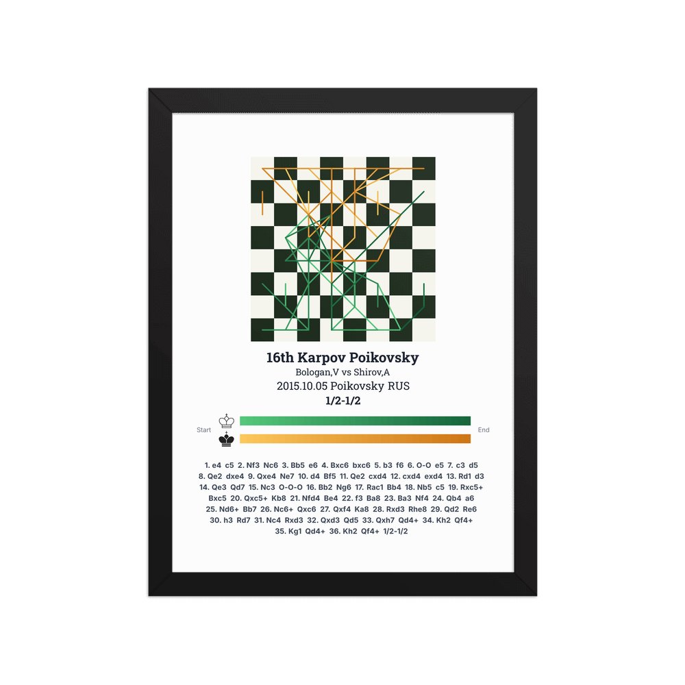 Museum-quality poster on thick, durable matte paper. A sharp, clean look for any chess visualisation.