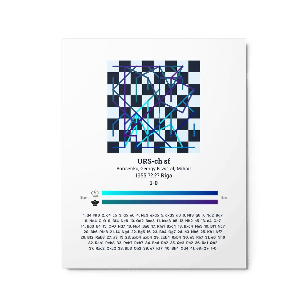 Museum-quality poster on thick, durable matte paper. A sharp, clean look for any chess visualisation.
