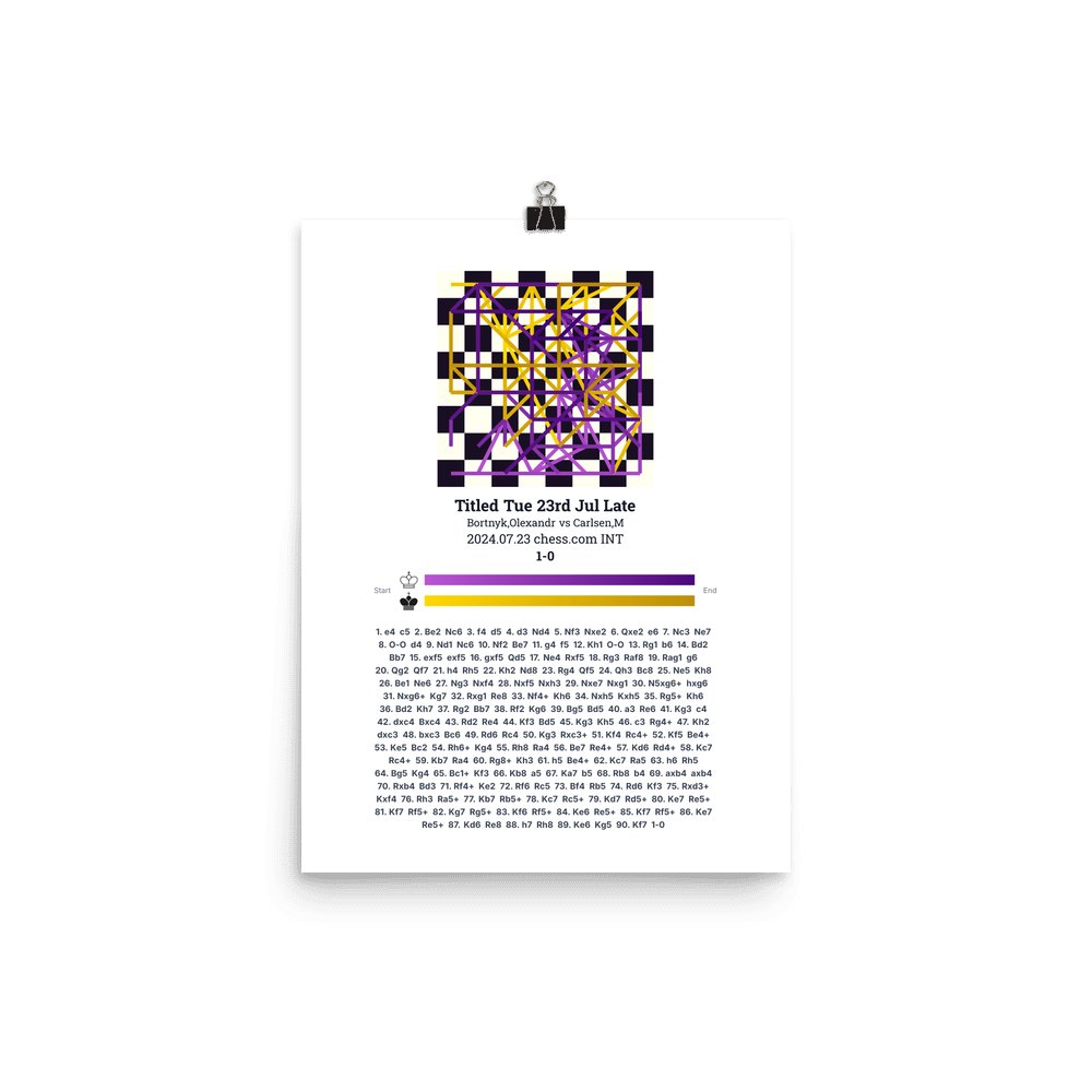 Museum-quality poster on thick, durable matte paper. A sharp, clean look for any chess visualisation.