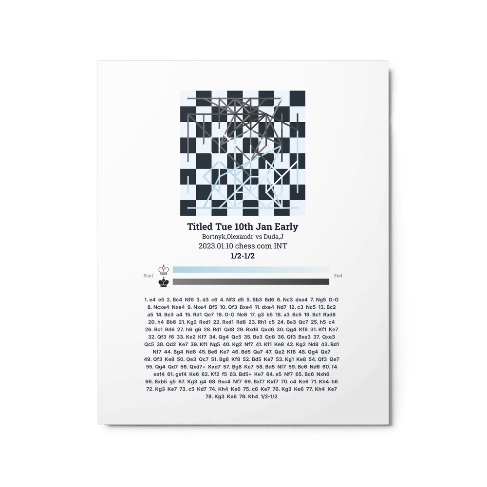 Museum-quality poster on thick, durable matte paper. A sharp, clean look for any chess visualisation.