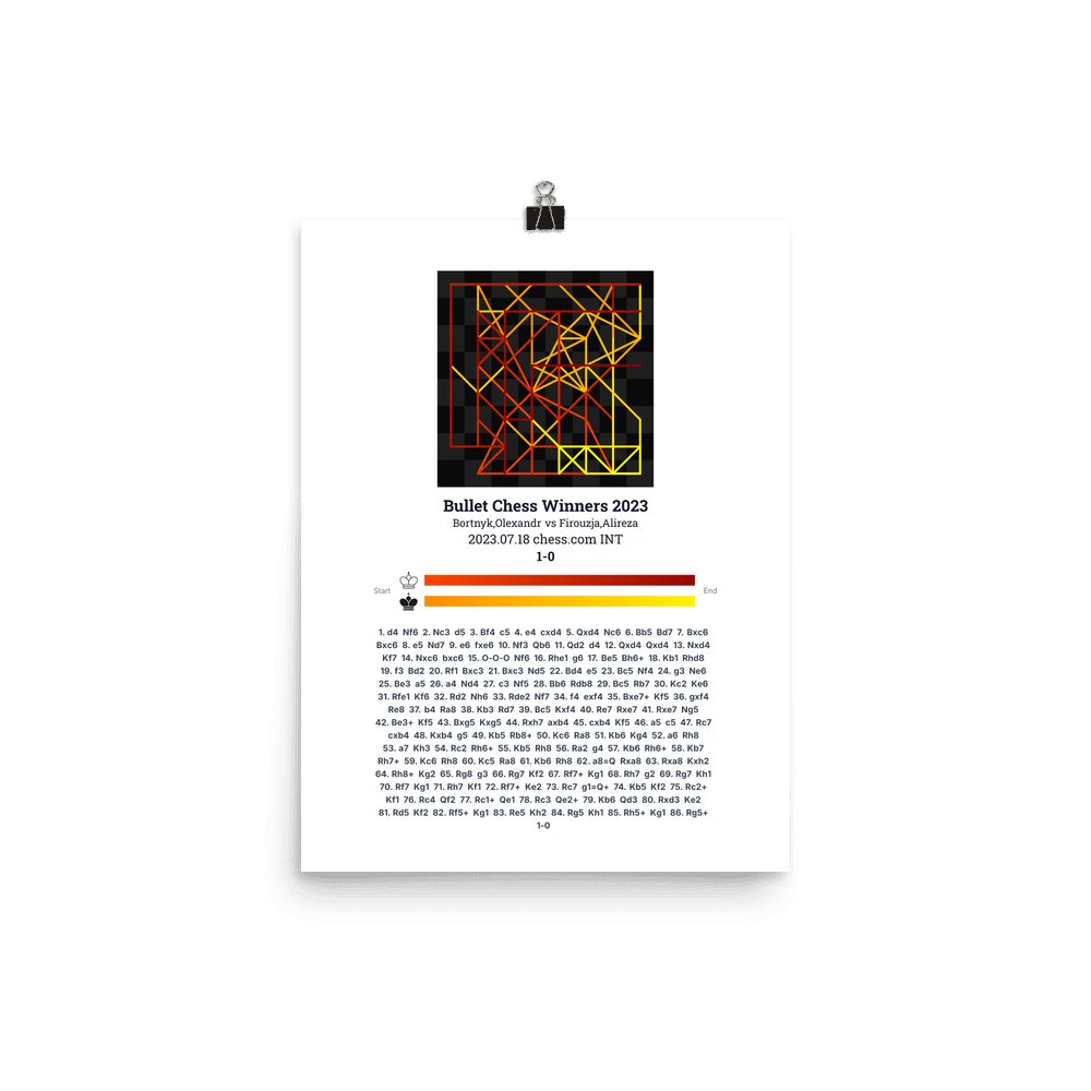 Museum-quality poster on thick, durable matte paper. A sharp, clean look for any chess visualisation.