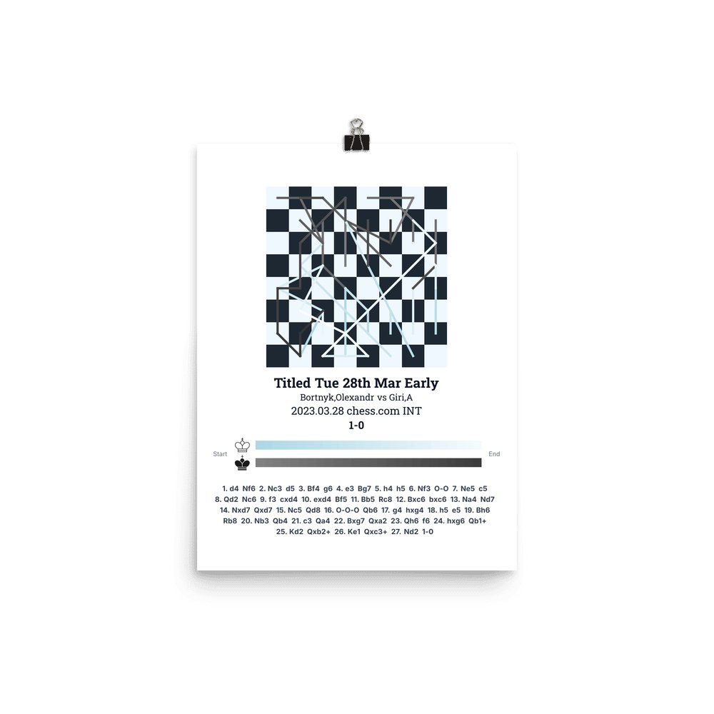 Museum-quality poster on thick, durable matte paper. A sharp, clean look for any chess visualisation.