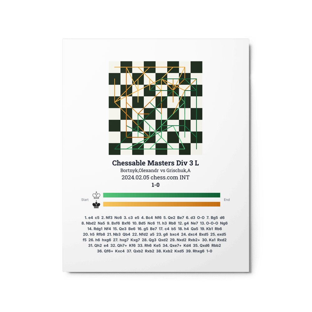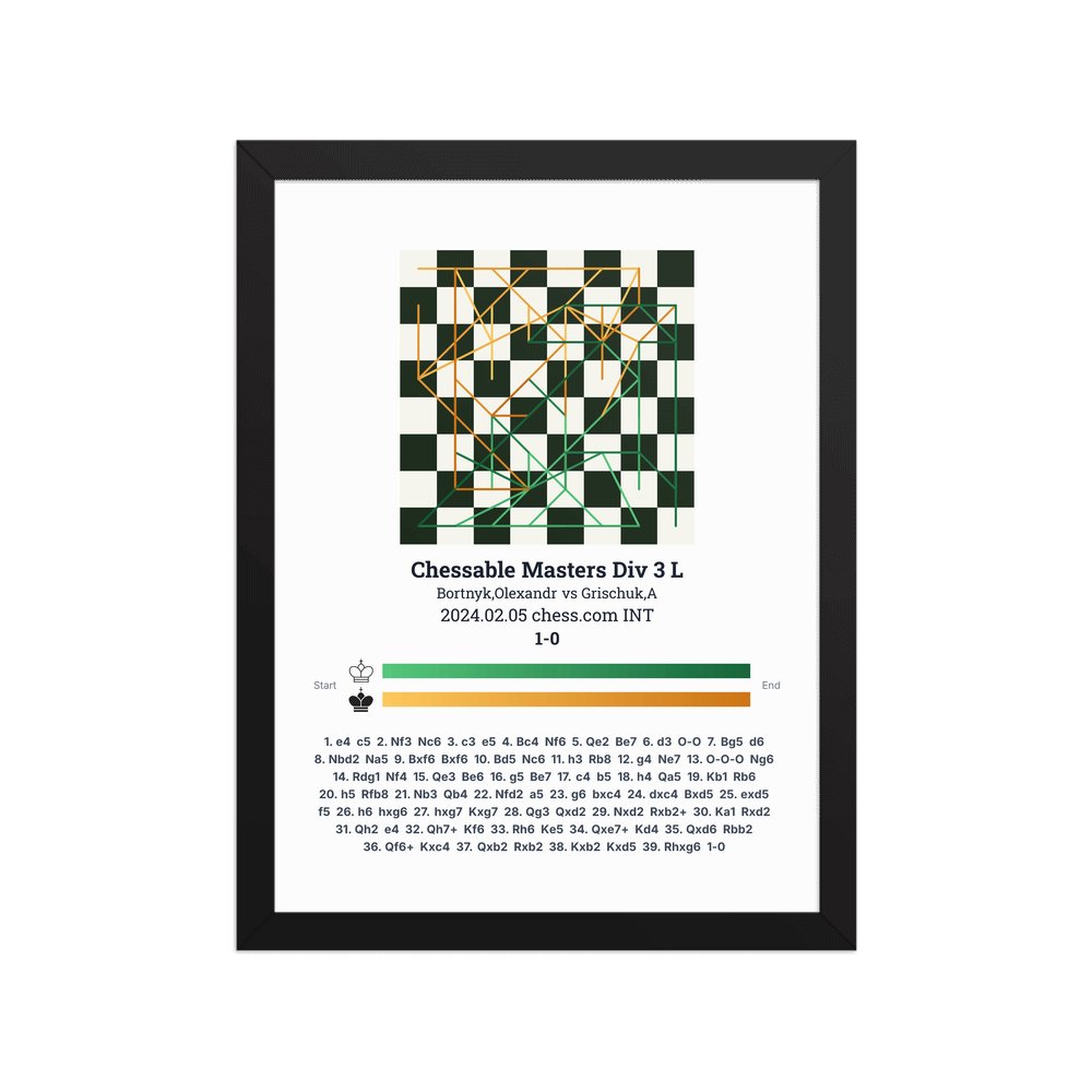 Museum-quality poster on thick, durable matte paper. A sharp, clean look for any chess visualisation.