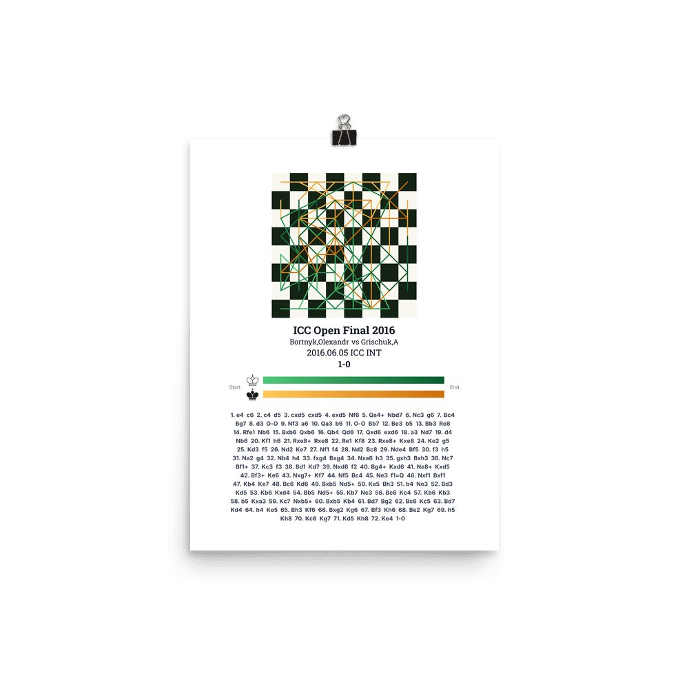 Museum-quality poster on thick, durable matte paper. A sharp, clean look for any chess visualisation.