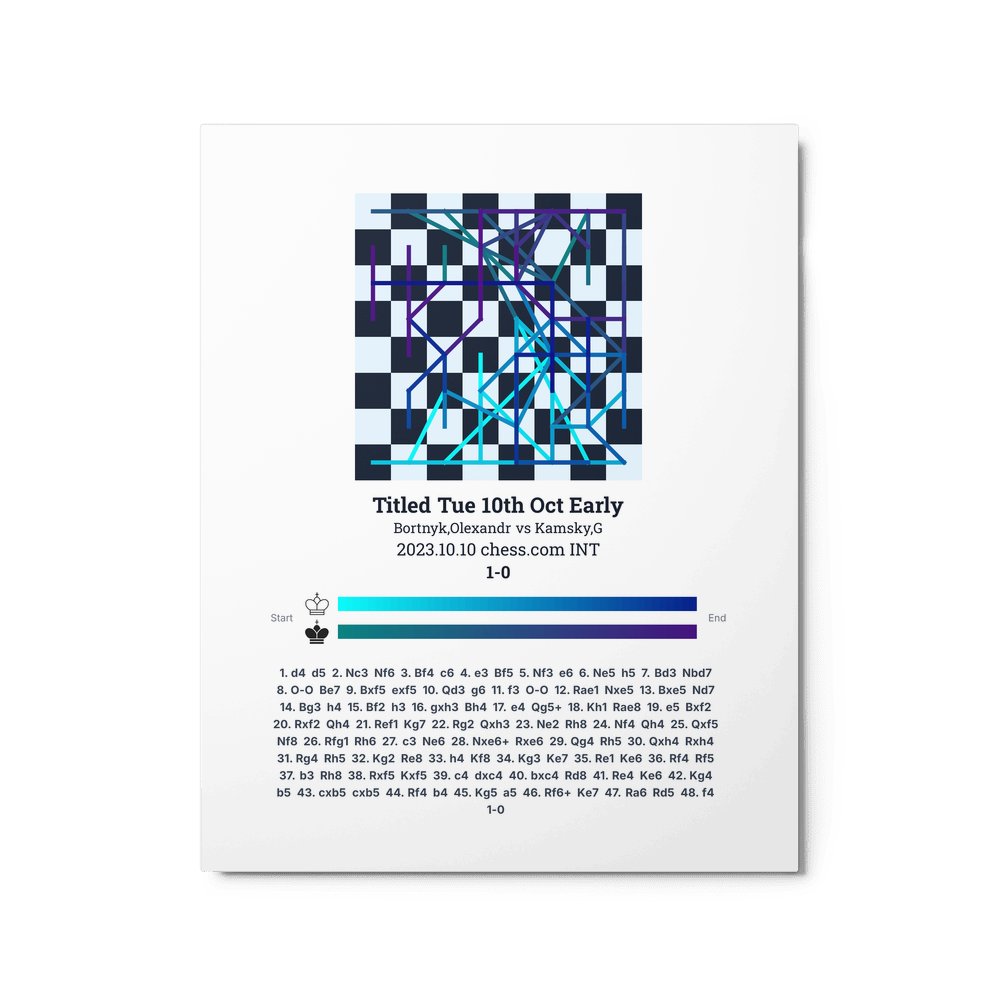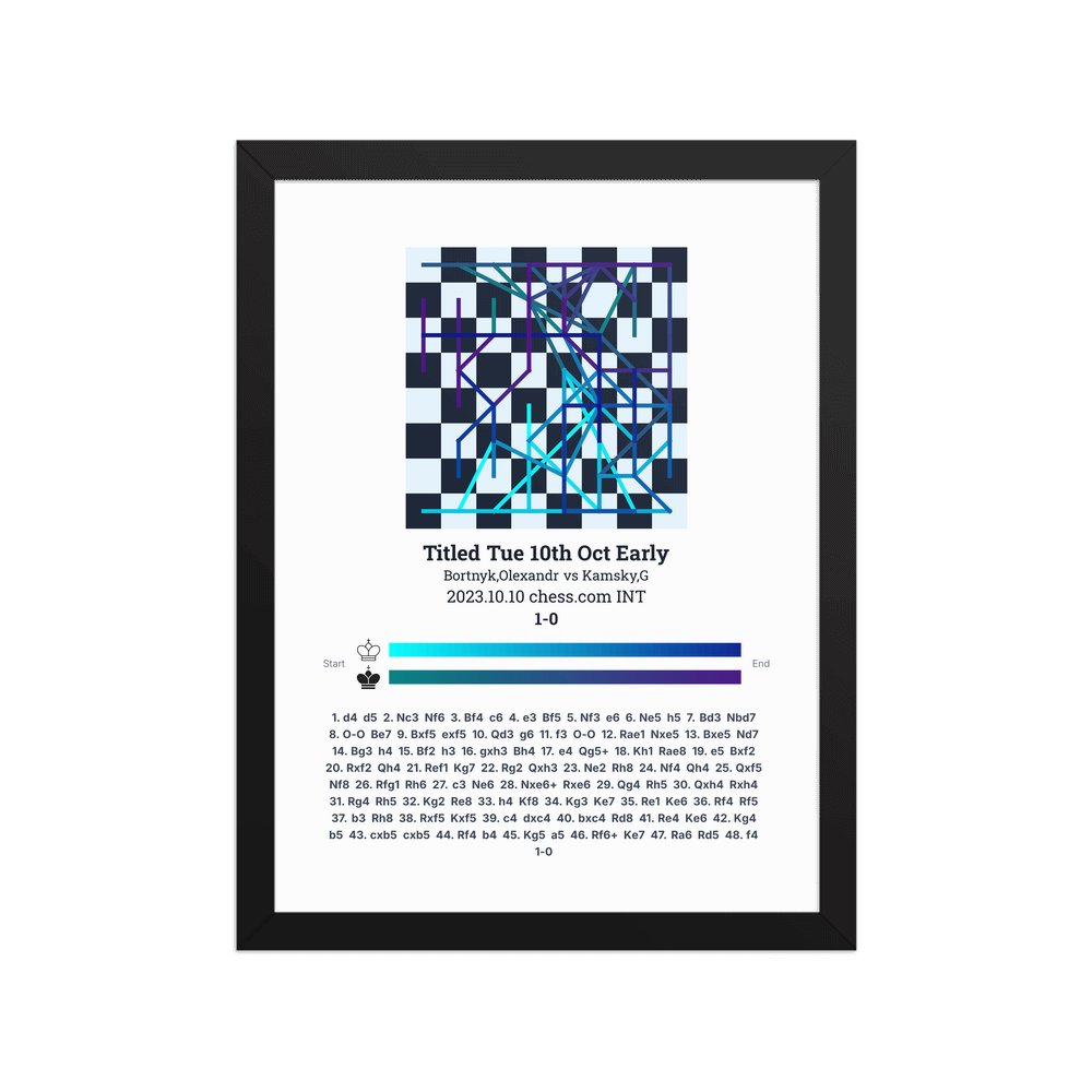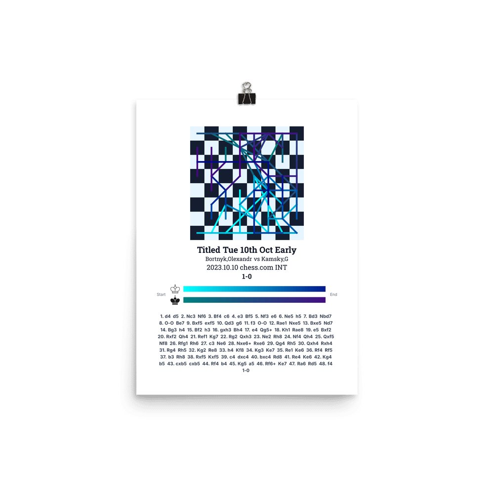 Museum-quality poster on thick, durable matte paper. A sharp, clean look for any chess visualisation.