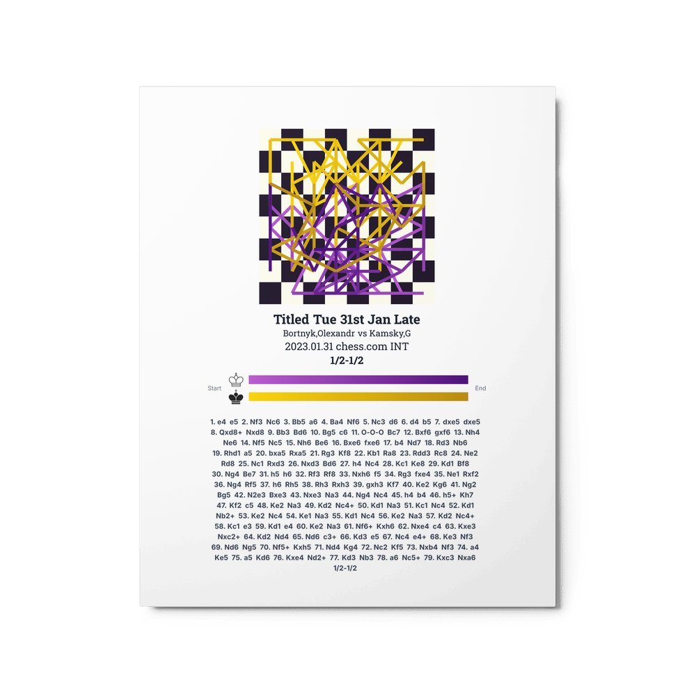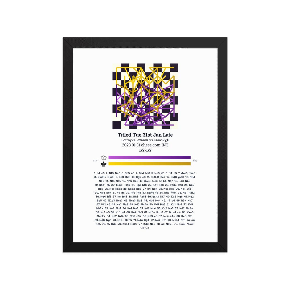 Museum-quality poster on thick, durable matte paper. A sharp, clean look for any chess visualisation.