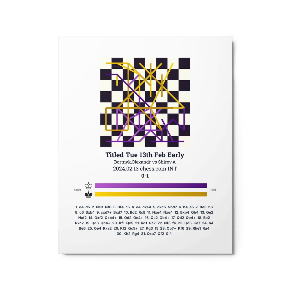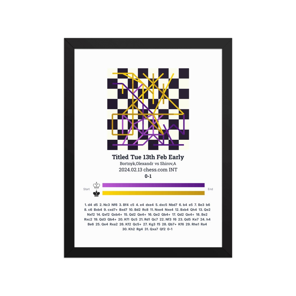 Museum-quality poster on thick, durable matte paper. A sharp, clean look for any chess visualisation.