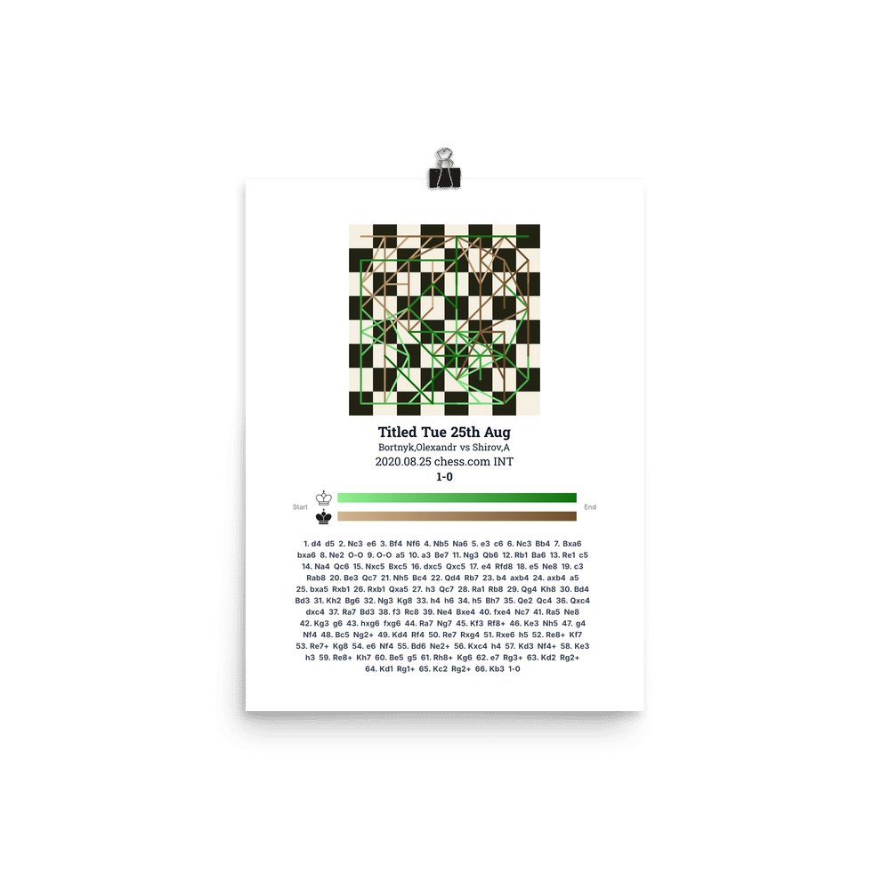 Museum-quality poster on thick, durable matte paper. A sharp, clean look for any chess visualisation.