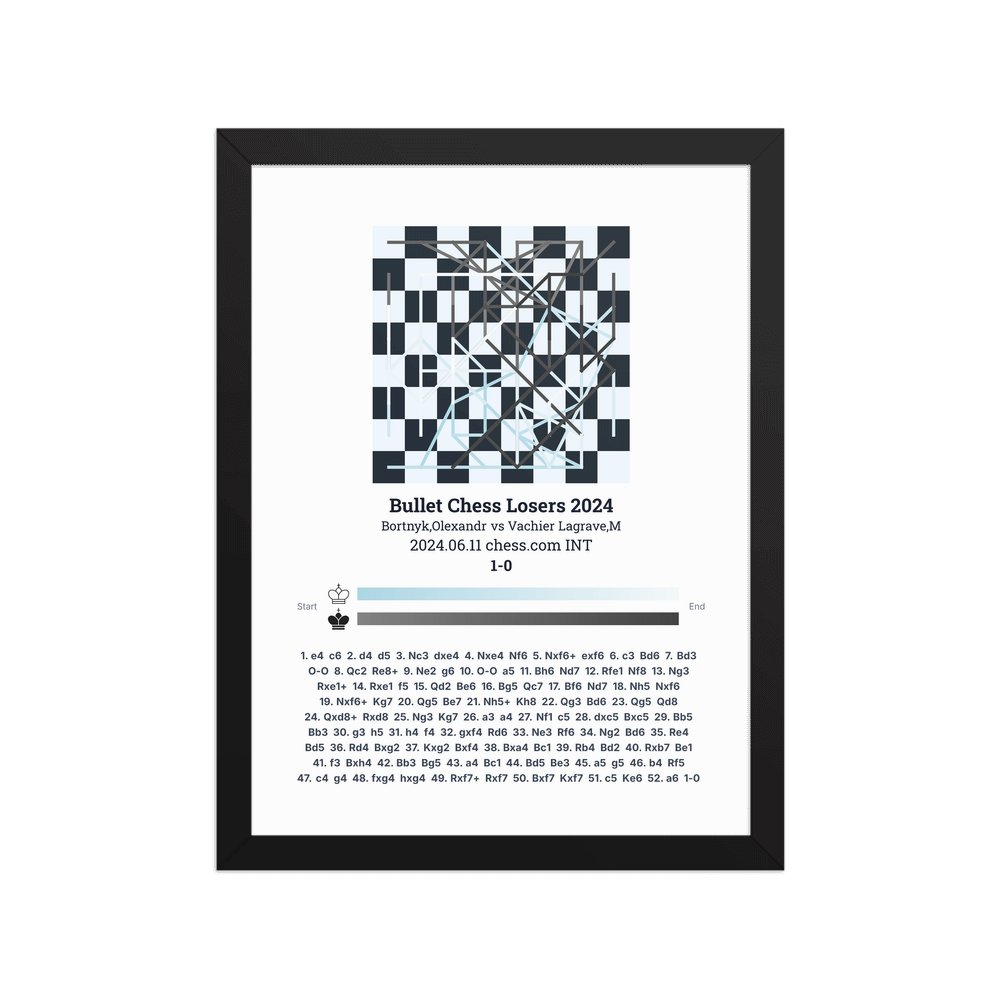 Museum-quality poster on thick, durable matte paper. A sharp, clean look for any chess visualisation.