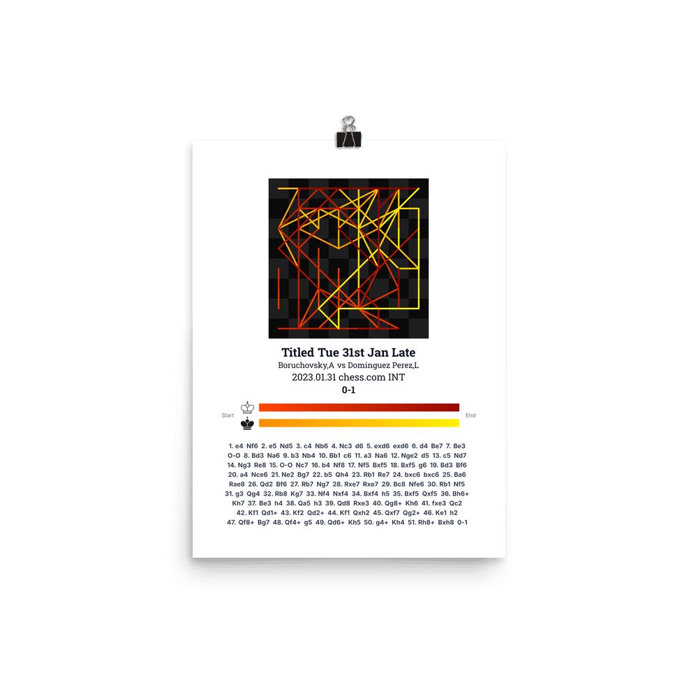 Museum-quality poster on thick, durable matte paper. A sharp, clean look for any chess visualisation.