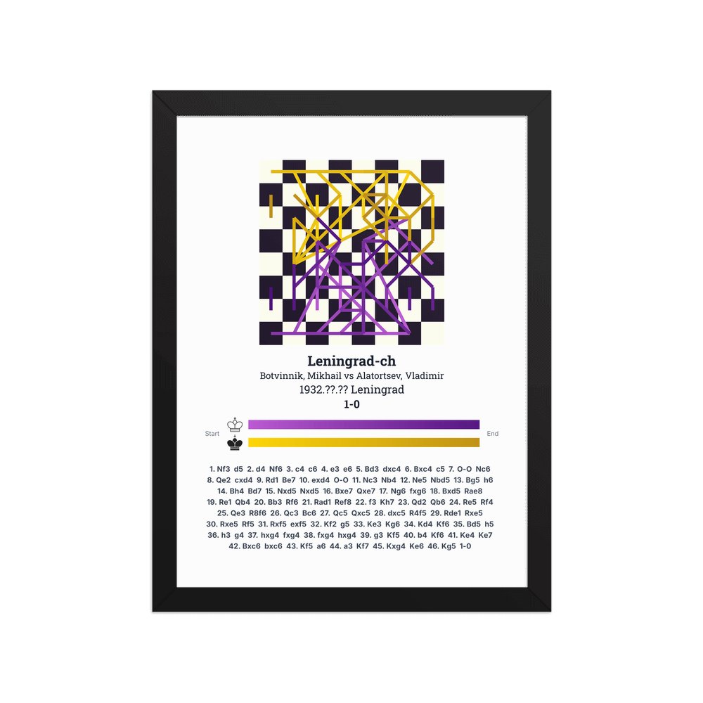 Museum-quality poster on thick, durable matte paper. A sharp, clean look for any chess visualisation.