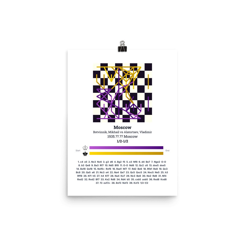 Museum-quality poster on thick, durable matte paper. A sharp, clean look for any chess visualisation.