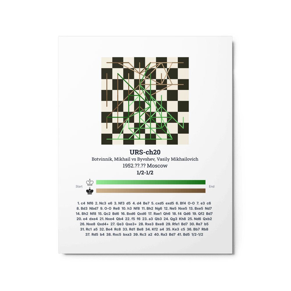 Museum-quality poster on thick, durable matte paper. A sharp, clean look for any chess visualisation.