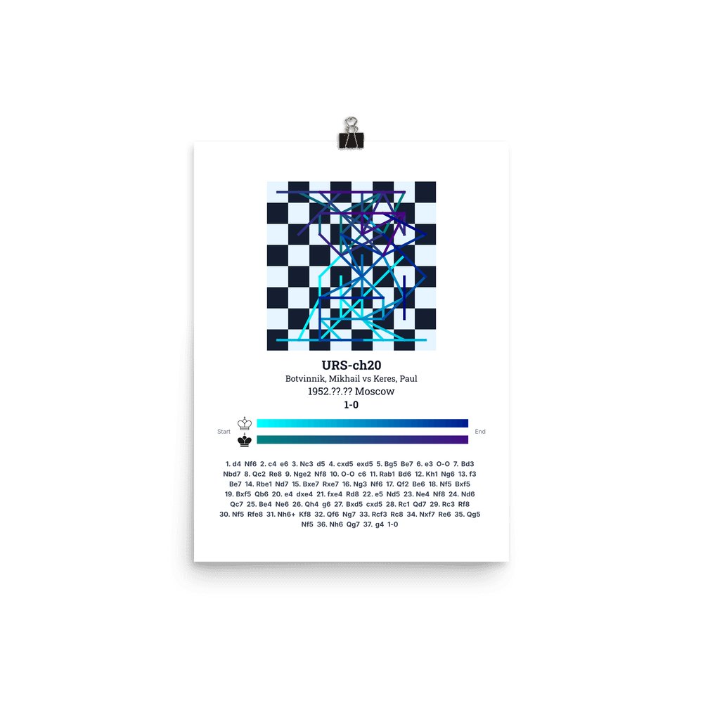 Museum-quality poster on thick, durable matte paper. A sharp, clean look for any chess visualisation.