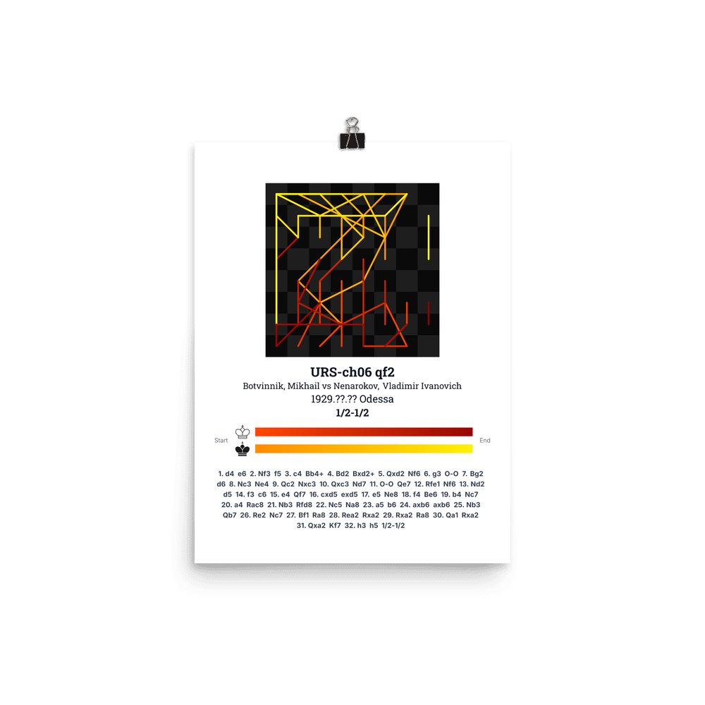 Museum-quality poster on thick, durable matte paper. A sharp, clean look for any chess visualisation.