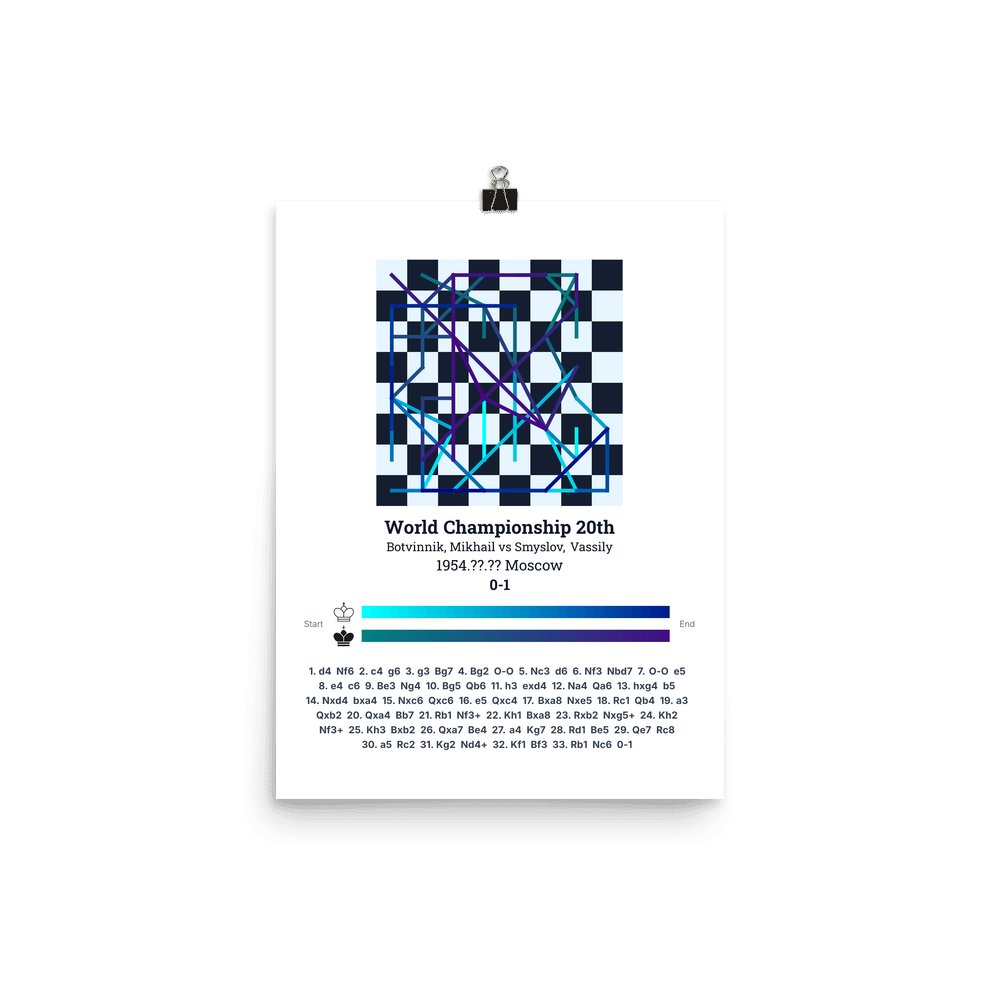 Museum-quality poster on thick, durable matte paper. A sharp, clean look for any chess visualisation.