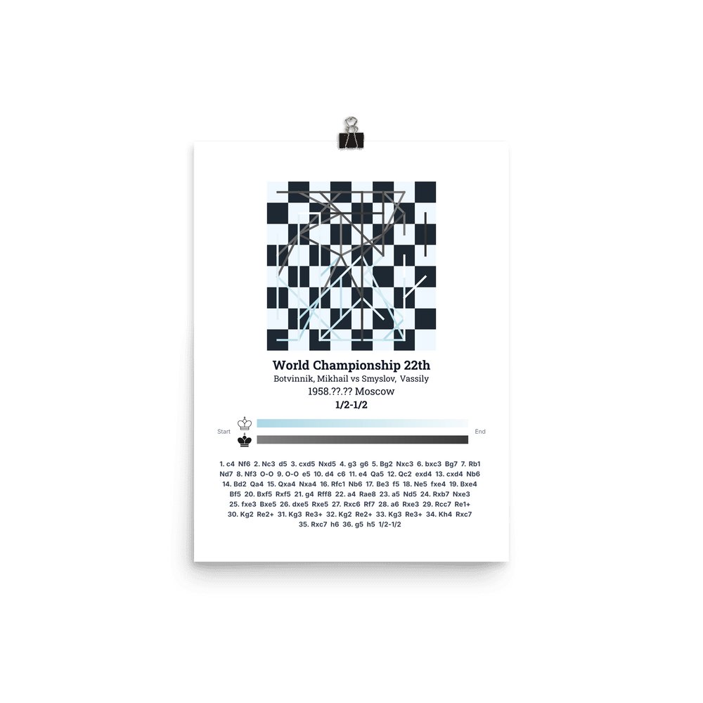 Museum-quality poster on thick, durable matte paper. A sharp, clean look for any chess visualisation.