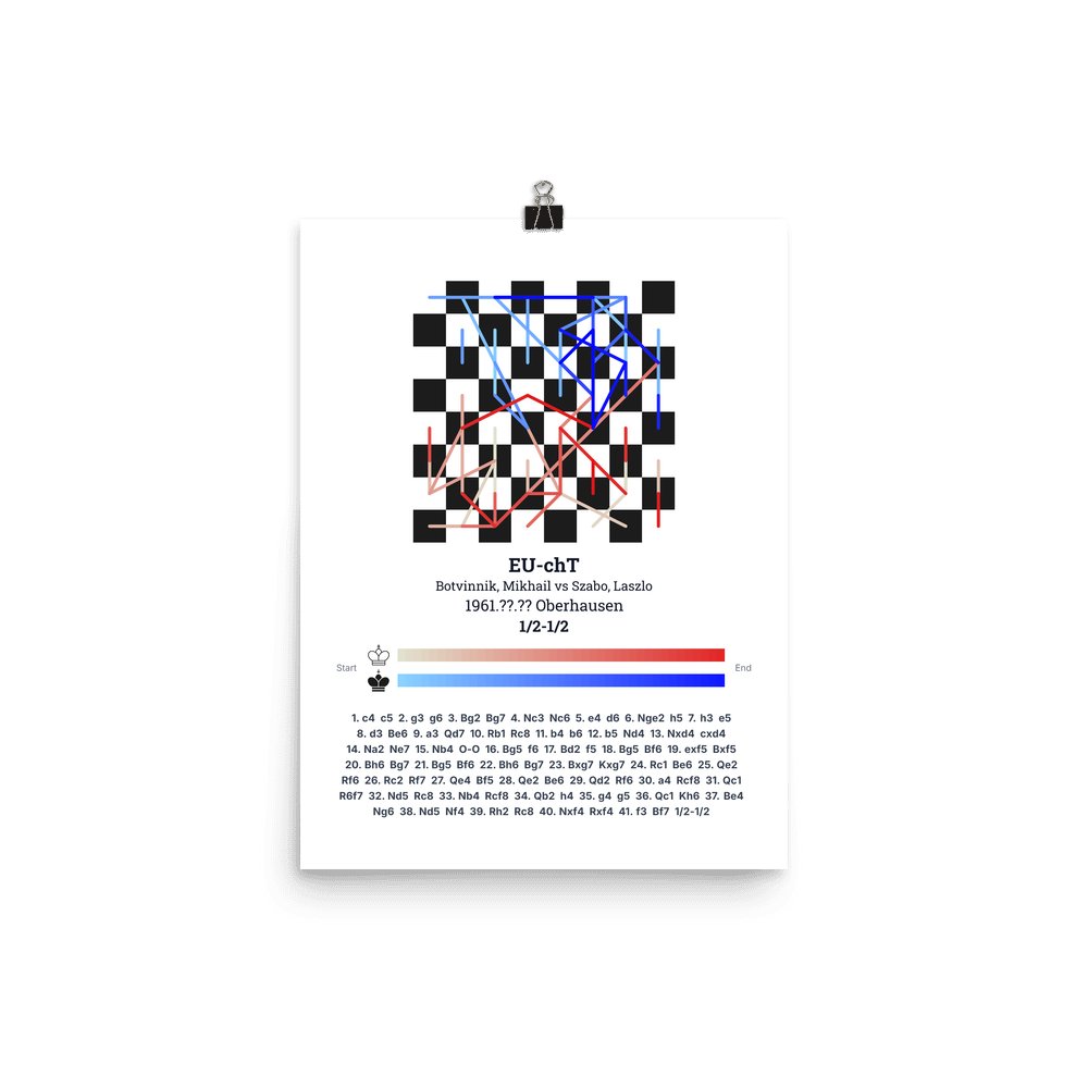 Museum-quality poster on thick, durable matte paper. A sharp, clean look for any chess visualisation.