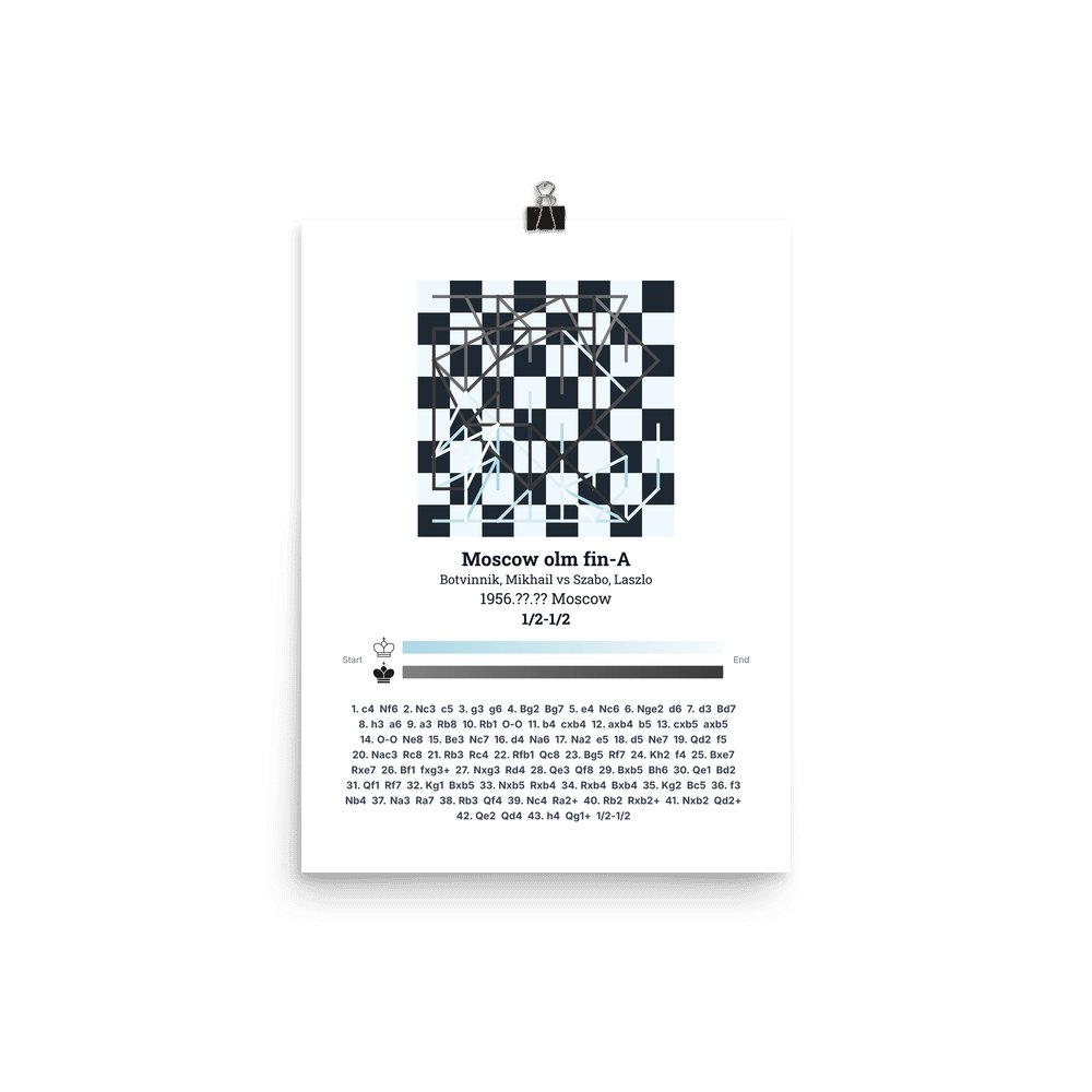 Museum-quality poster on thick, durable matte paper. A sharp, clean look for any chess visualisation.
