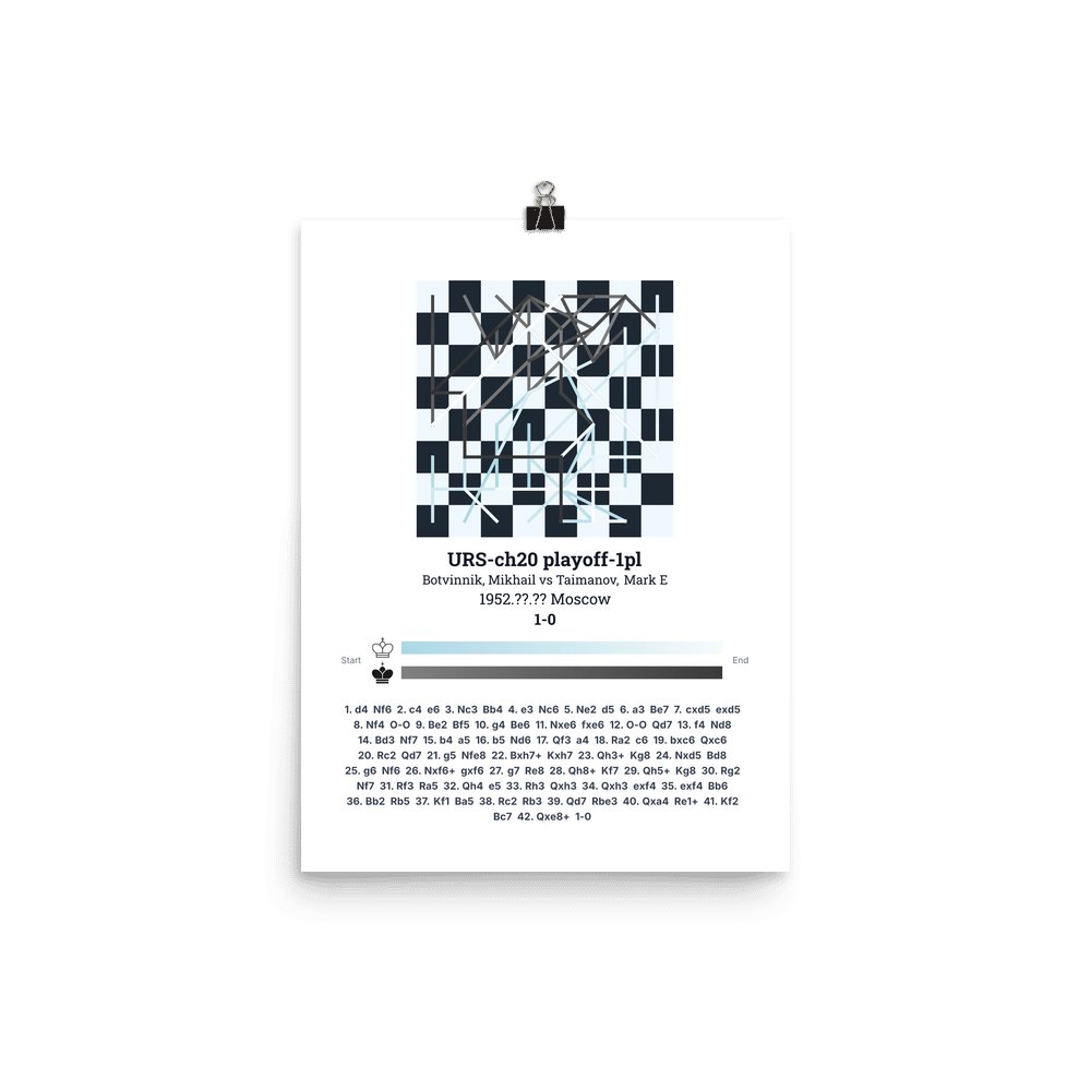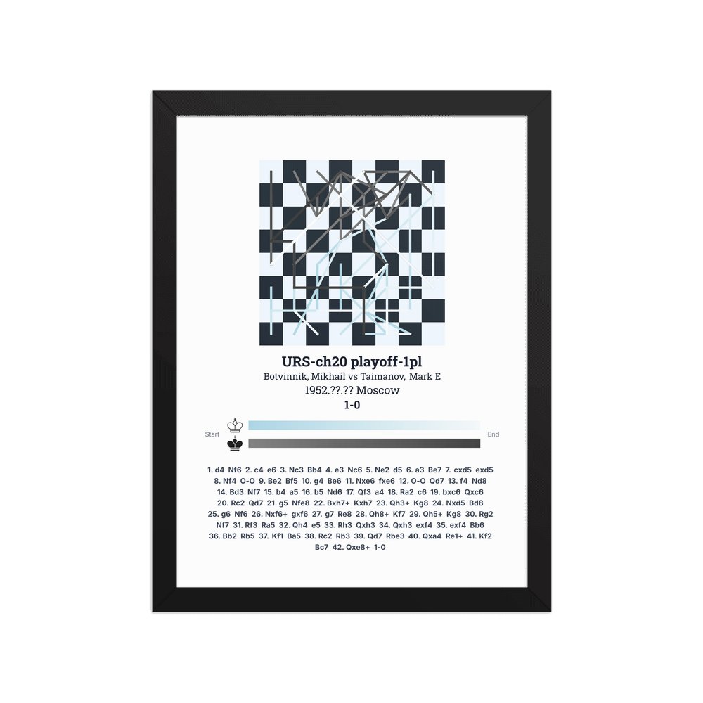 Museum-quality poster on thick, durable matte paper. A sharp, clean look for any chess visualisation.