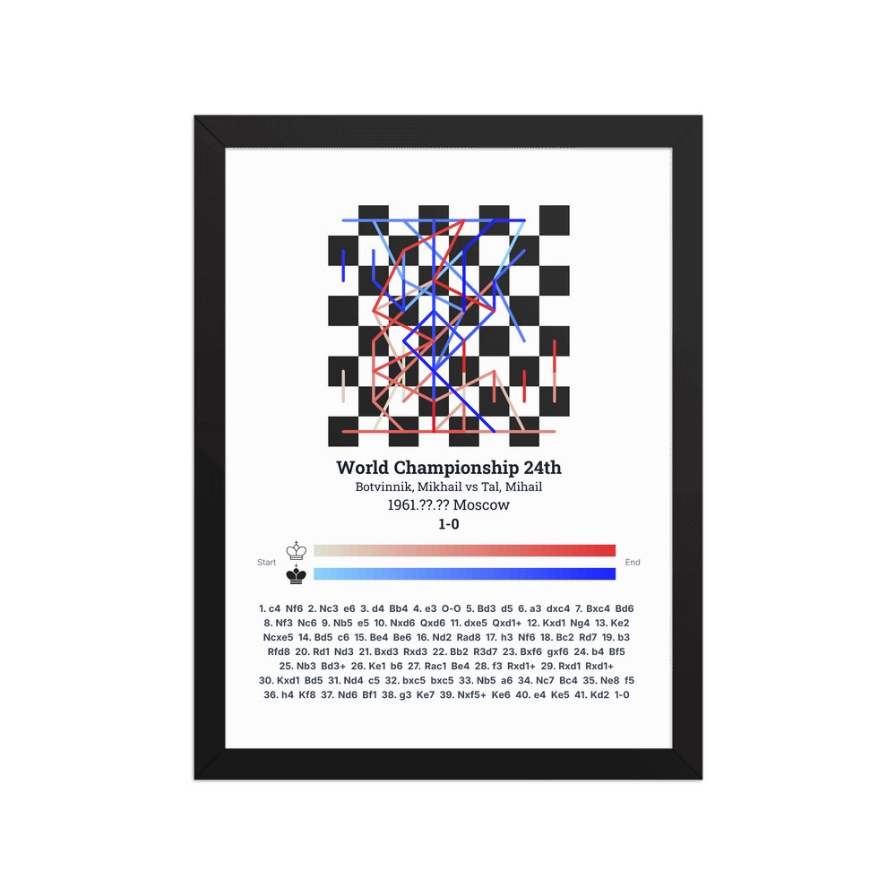 Museum-quality poster on thick, durable matte paper. A sharp, clean look for any chess visualisation.
