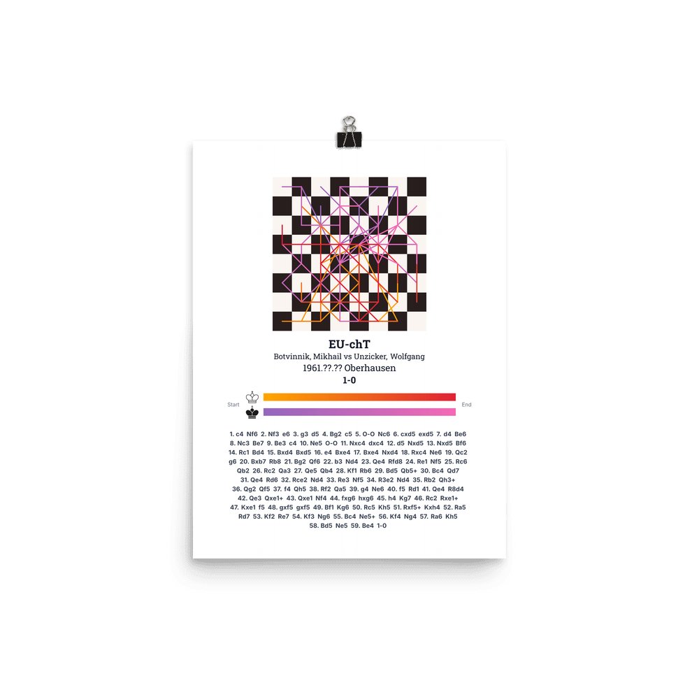 Museum-quality poster on thick, durable matte paper. A sharp, clean look for any chess visualisation.
