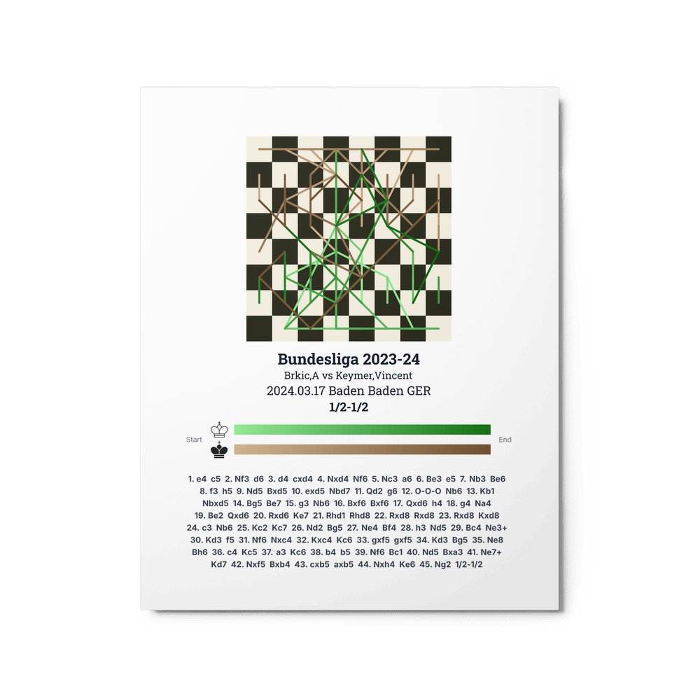 Museum-quality poster on thick, durable matte paper. A sharp, clean look for any chess visualisation.