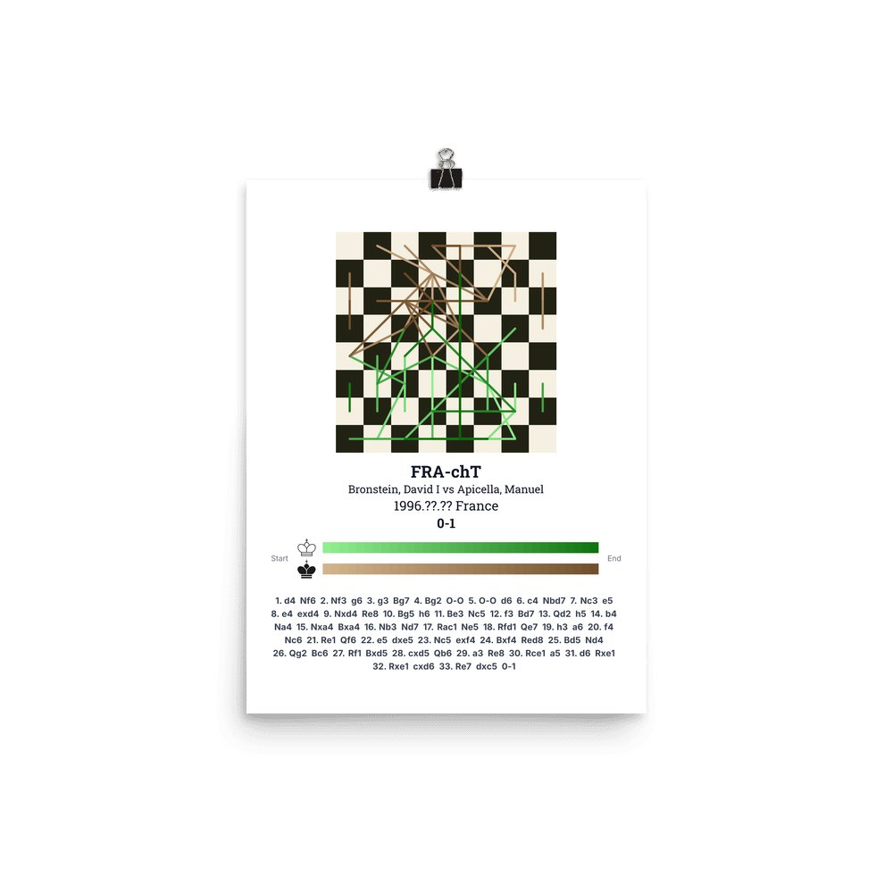 Museum-quality poster on thick, durable matte paper. A sharp, clean look for any chess visualisation.