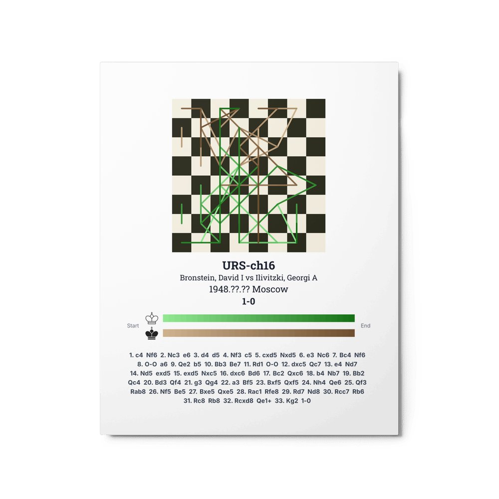 Museum-quality poster on thick, durable matte paper. A sharp, clean look for any chess visualisation.