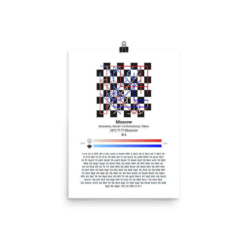 Museum-quality poster on thick, durable matte paper. A sharp, clean look for any chess visualisation.