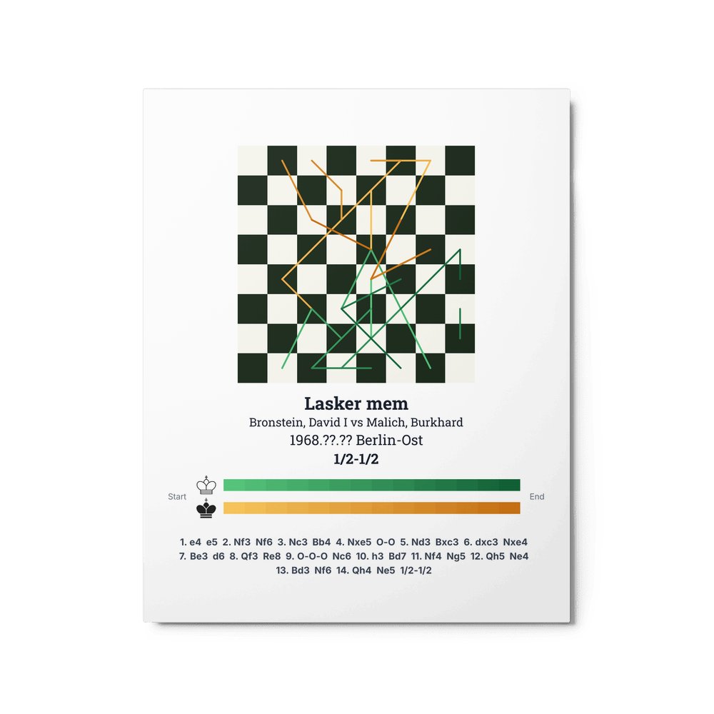 Museum-quality poster on thick, durable matte paper. A sharp, clean look for any chess visualisation.