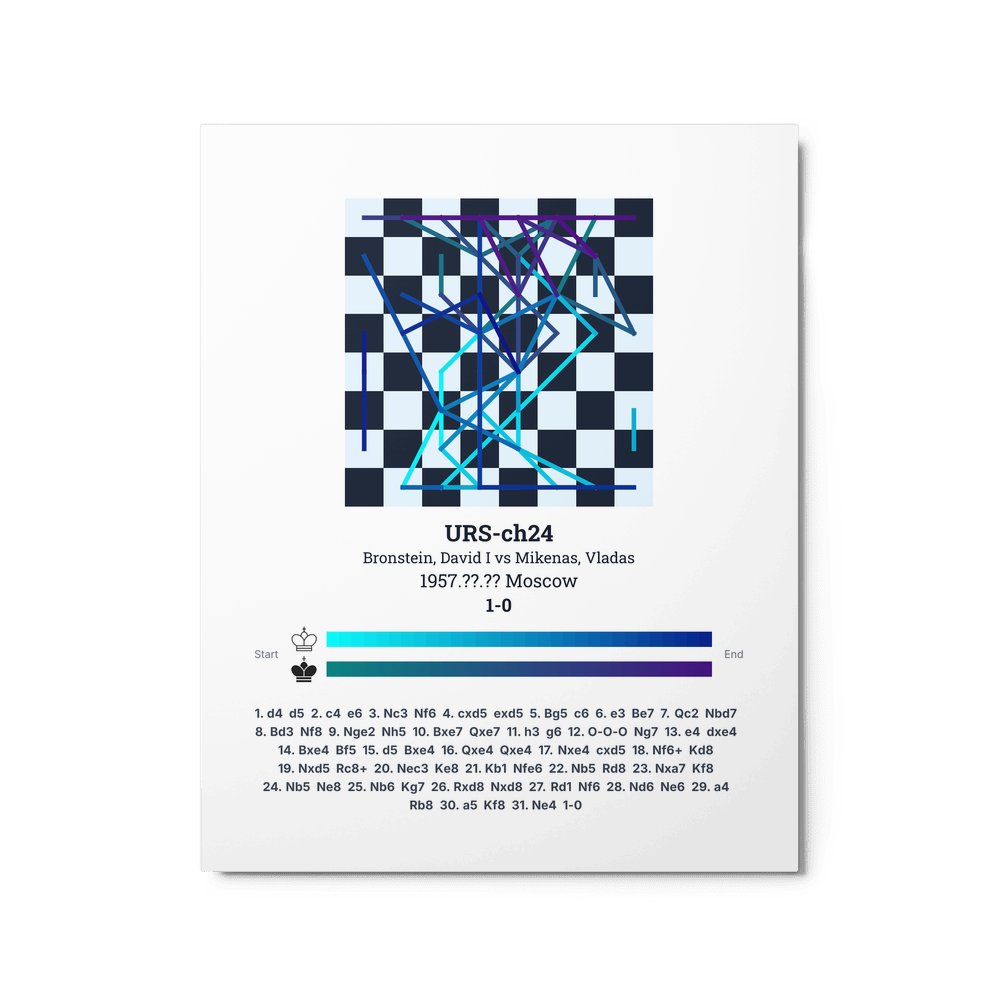 Museum-quality poster on thick, durable matte paper. A sharp, clean look for any chess visualisation.