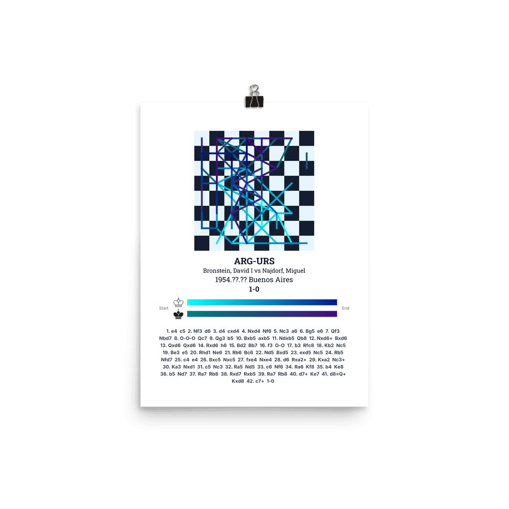 Museum-quality poster on thick, durable matte paper. A sharp, clean look for any chess visualisation.