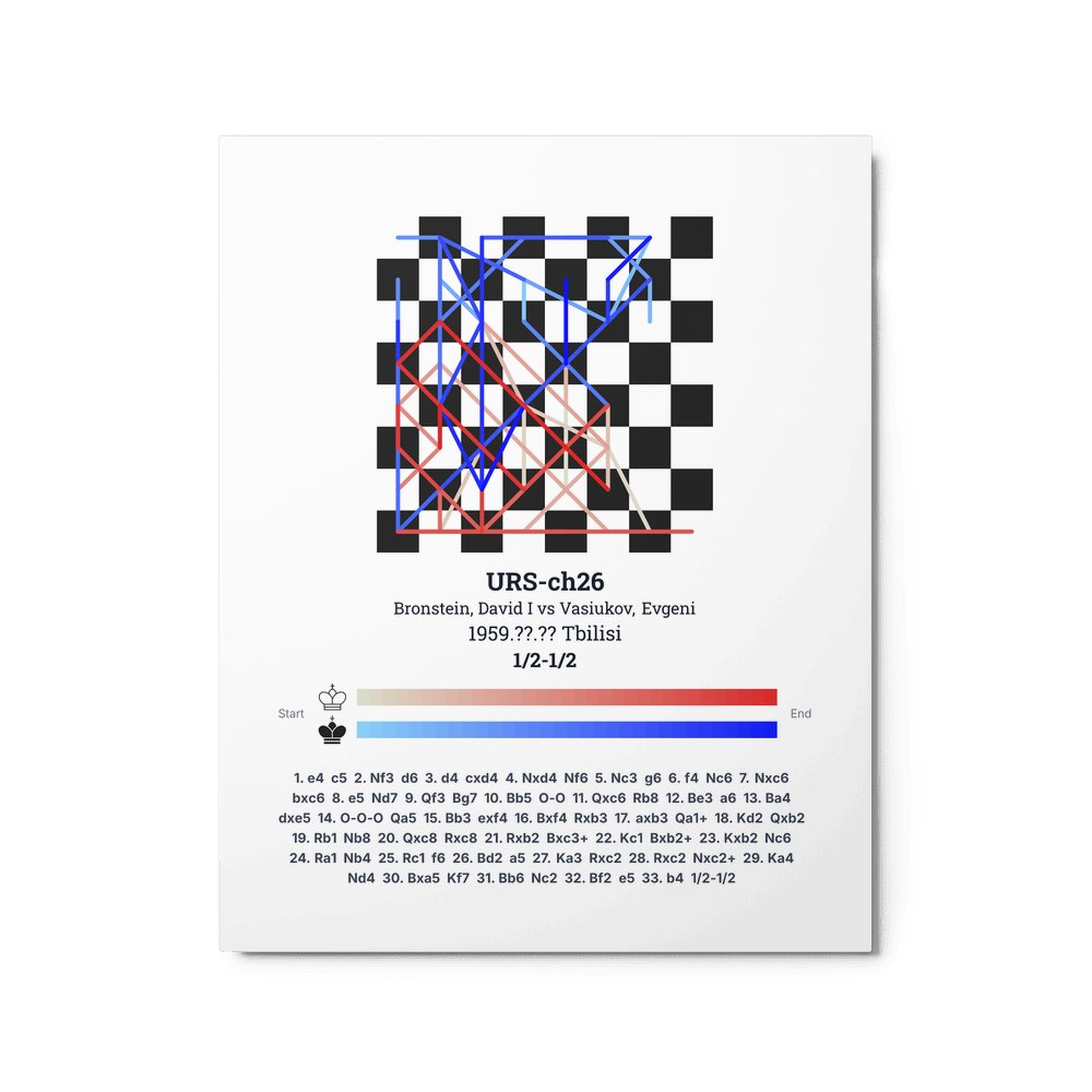 Museum-quality poster on thick, durable matte paper. A sharp, clean look for any chess visualisation.