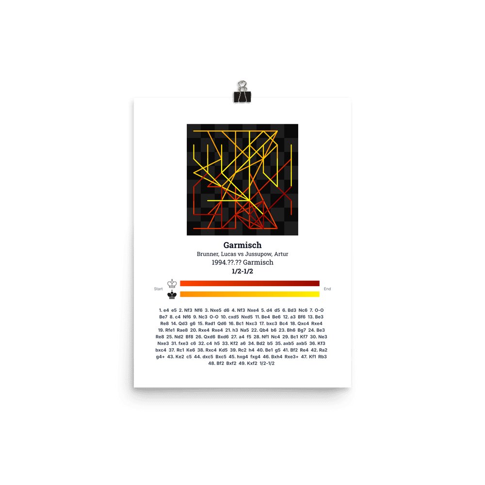 Museum-quality poster on thick, durable matte paper. A sharp, clean look for any chess visualisation.