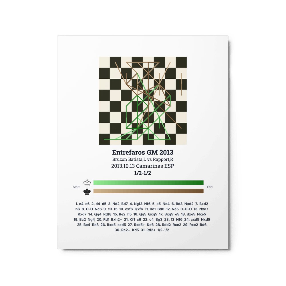 Museum-quality poster on thick, durable matte paper. A sharp, clean look for any chess visualisation.