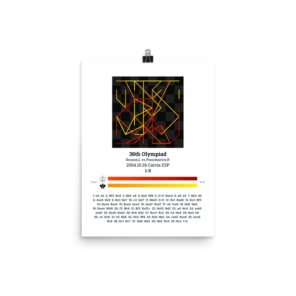 Museum-quality poster on thick, durable matte paper. A sharp, clean look for any chess visualisation.