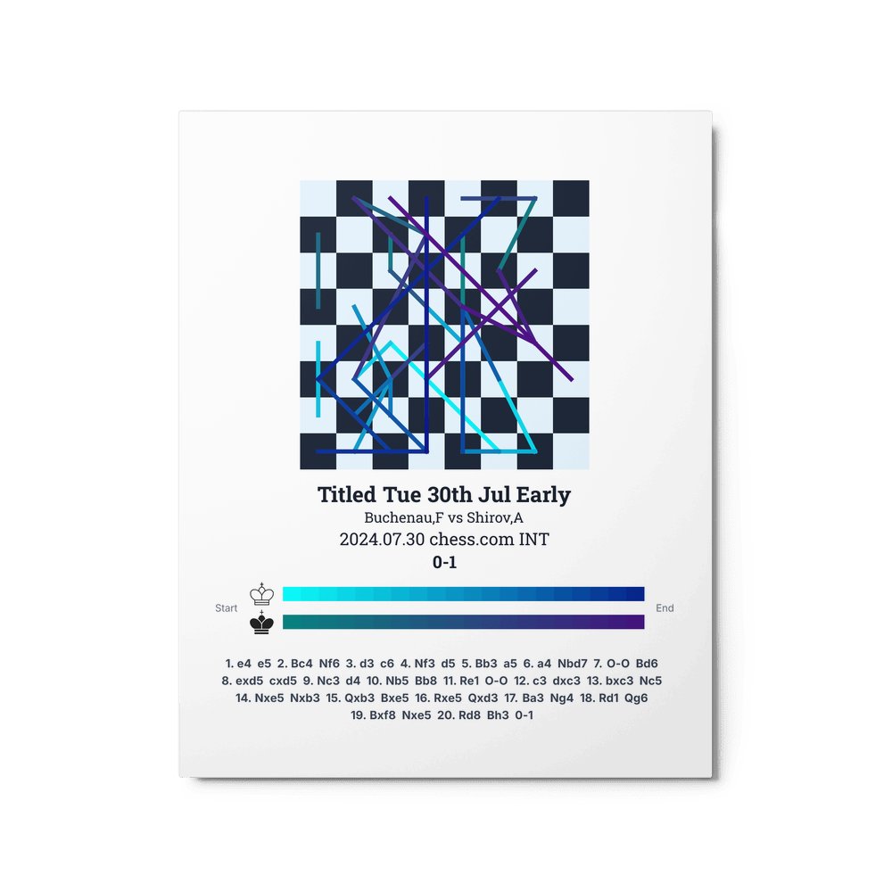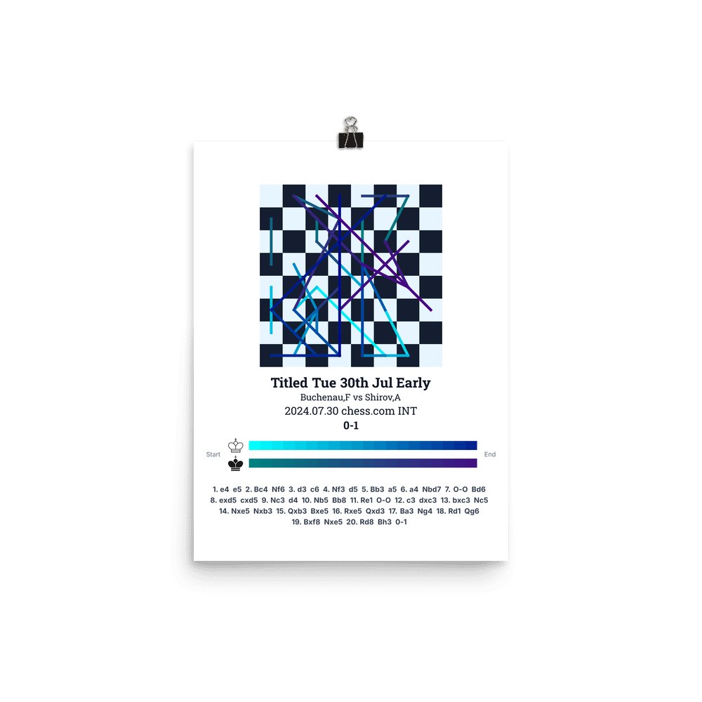 Museum-quality poster on thick, durable matte paper. A sharp, clean look for any chess visualisation.