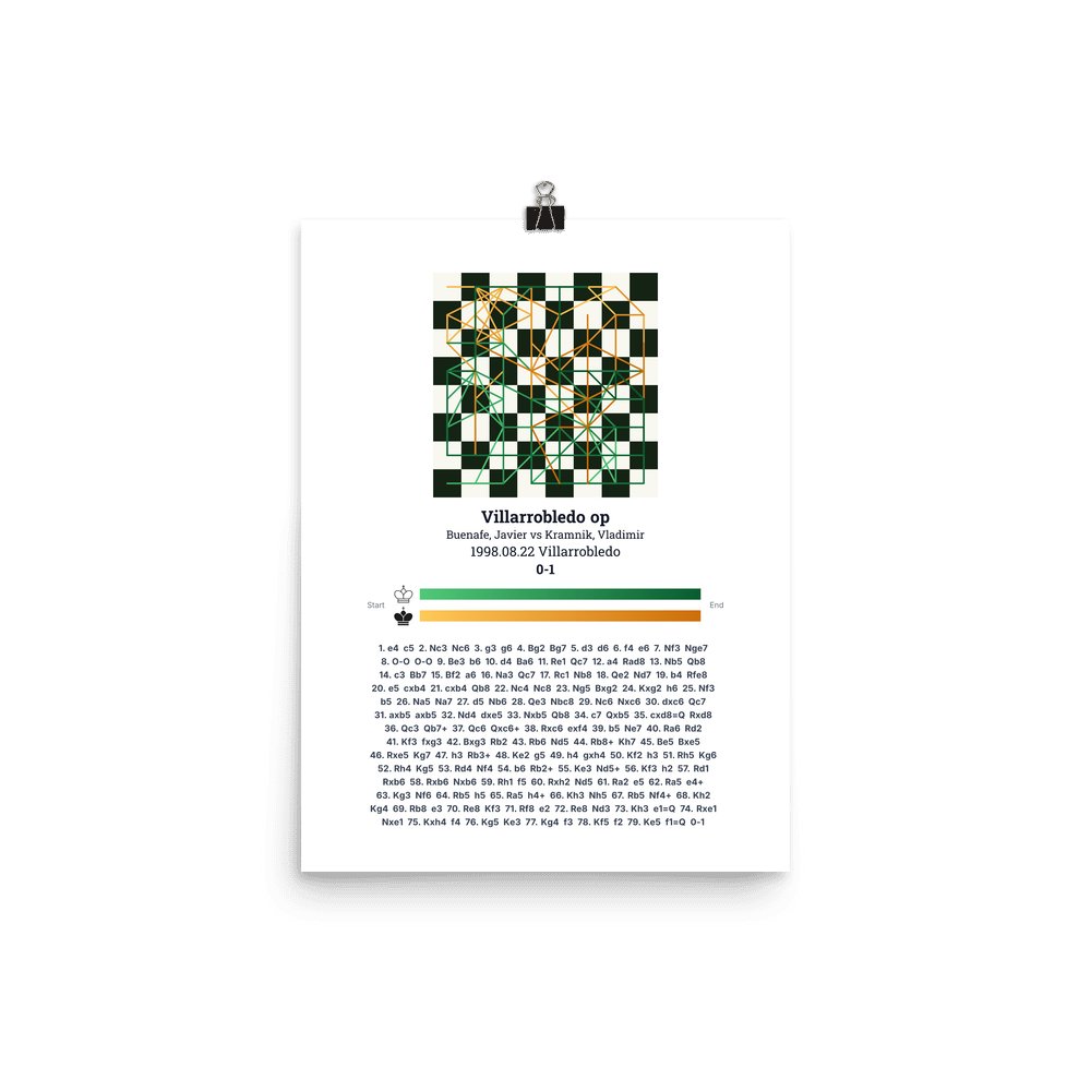Museum-quality poster on thick, durable matte paper. A sharp, clean look for any chess visualisation.