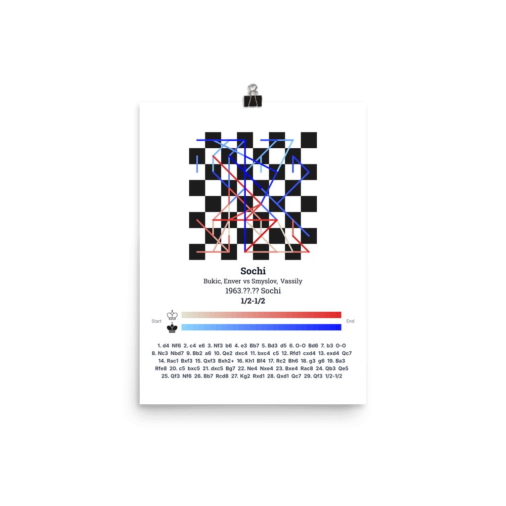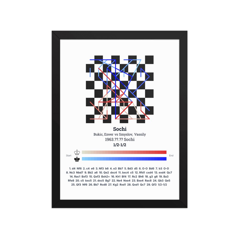 Museum-quality poster on thick, durable matte paper. A sharp, clean look for any chess visualisation.