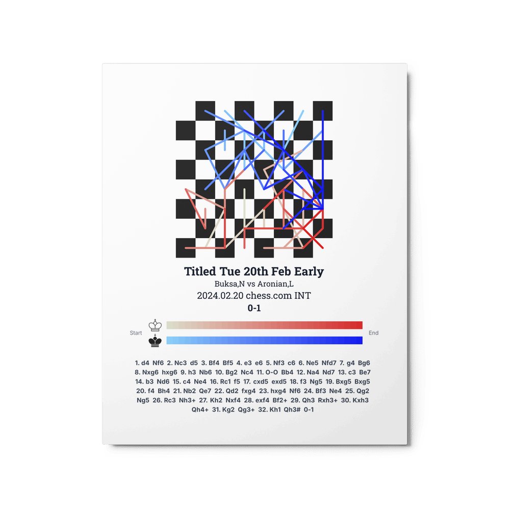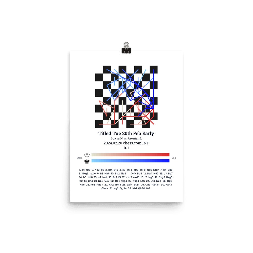 Museum-quality poster on thick, durable matte paper. A sharp, clean look for any chess visualisation.
