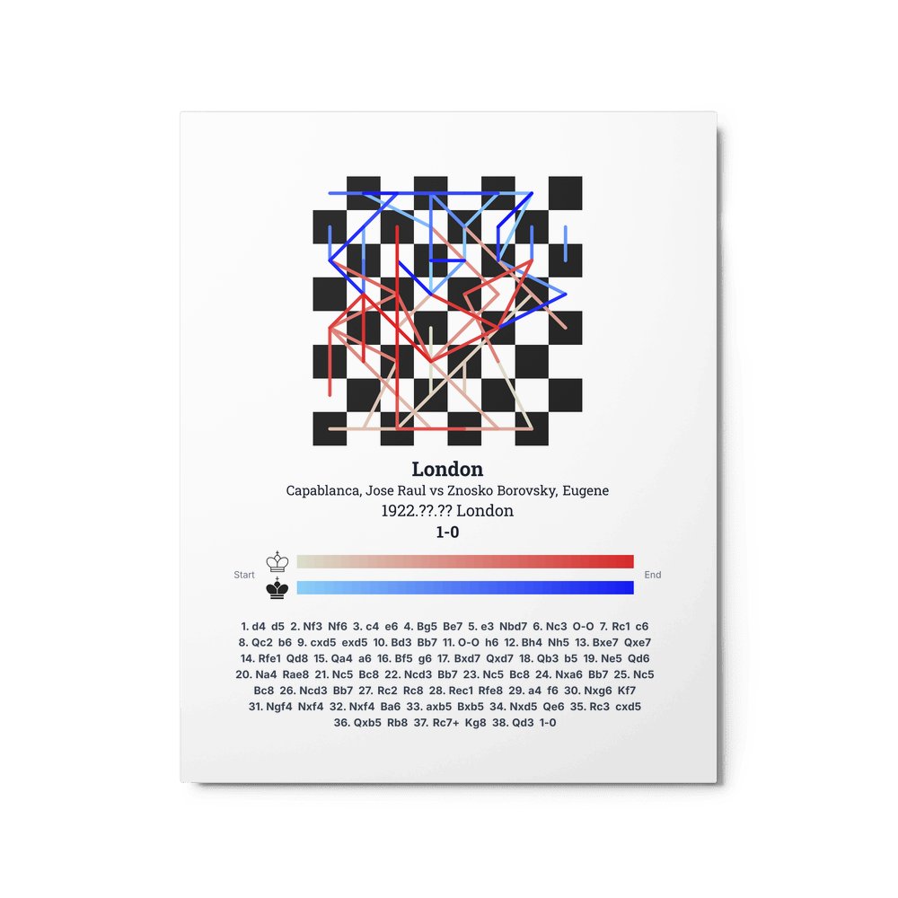 Museum-quality poster on thick, durable matte paper. A sharp, clean look for any chess visualisation.