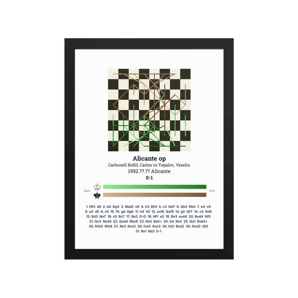 Museum-quality poster on thick, durable matte paper. A sharp, clean look for any chess visualisation.