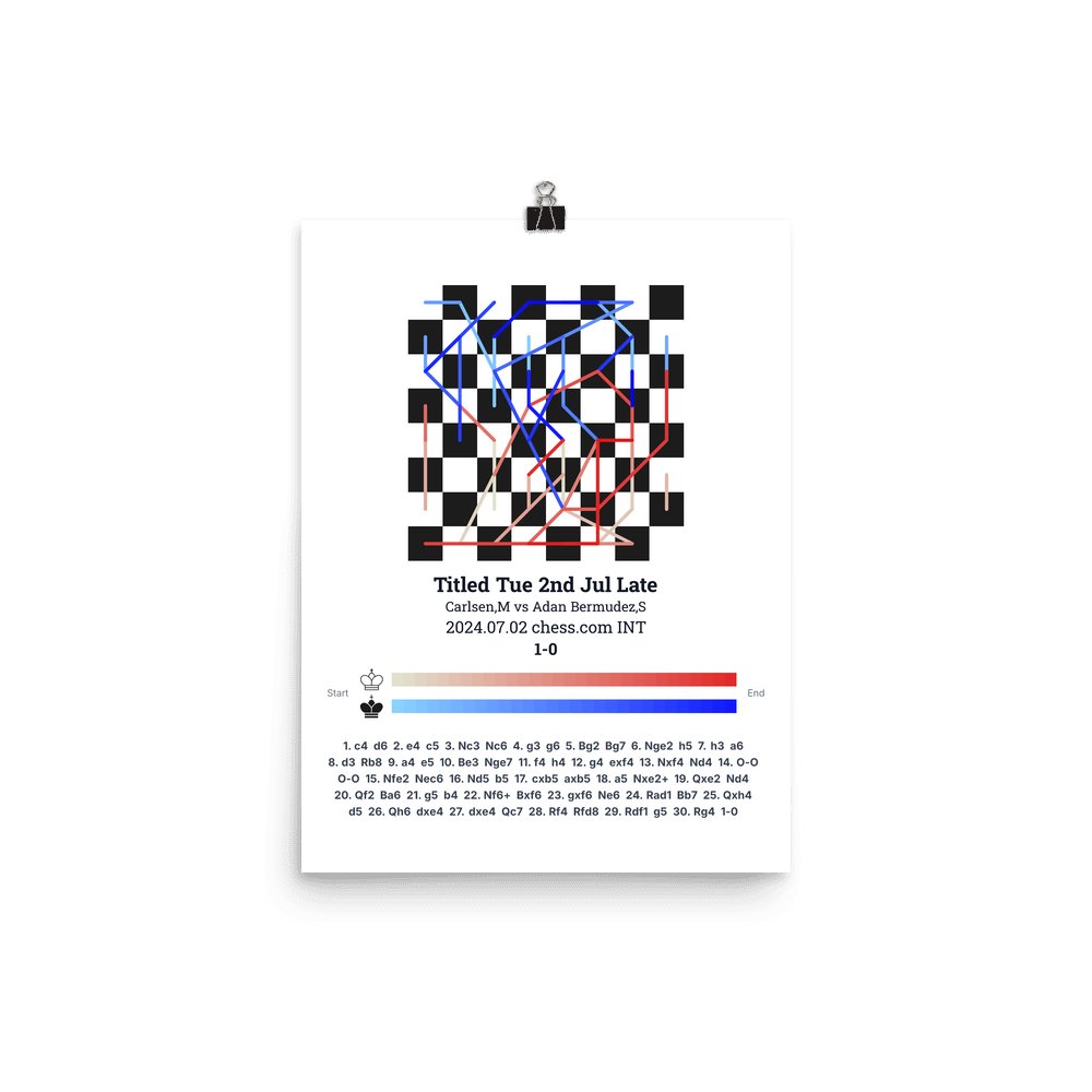Museum-quality poster on thick, durable matte paper. A sharp, clean look for any chess visualisation.