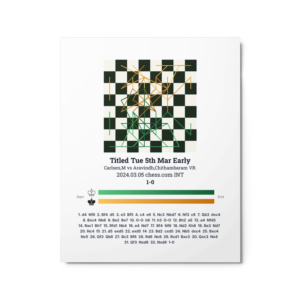 Museum-quality poster on thick, durable matte paper. A sharp, clean look for any chess visualisation.