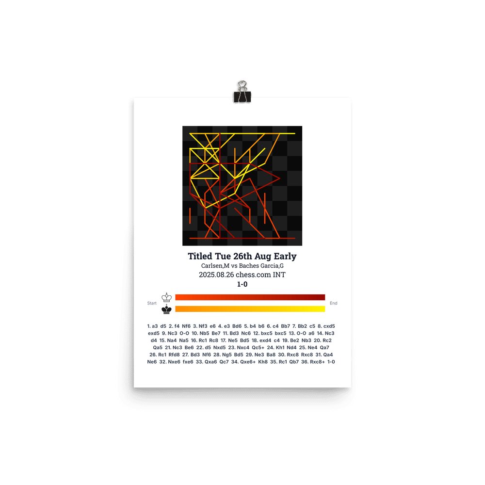 Museum-quality poster on thick, durable matte paper. A sharp, clean look for any chess visualisation.
