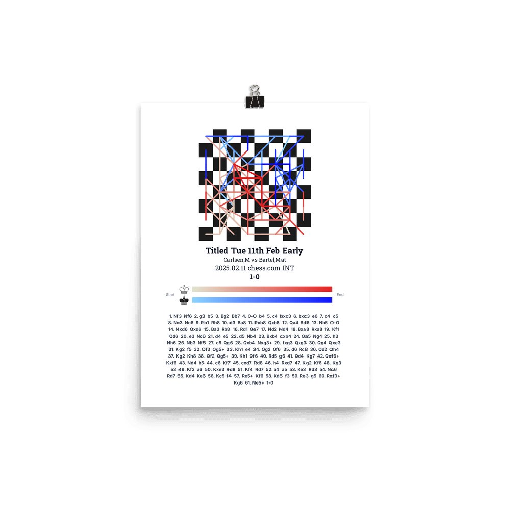 Museum-quality poster on thick, durable matte paper. A sharp, clean look for any chess visualisation.