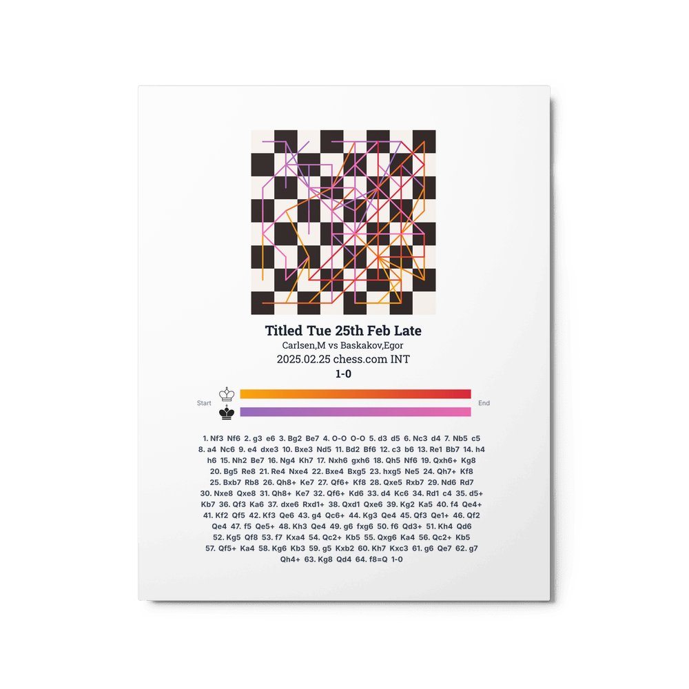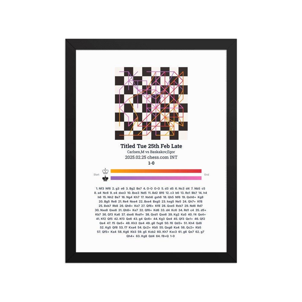 Museum-quality poster on thick, durable matte paper. A sharp, clean look for any chess visualisation.